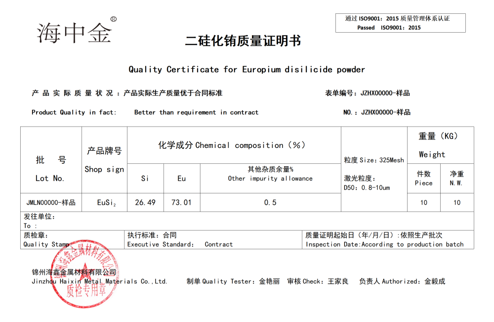 產(chǎn)品名稱:二硅化銪(EuSi2